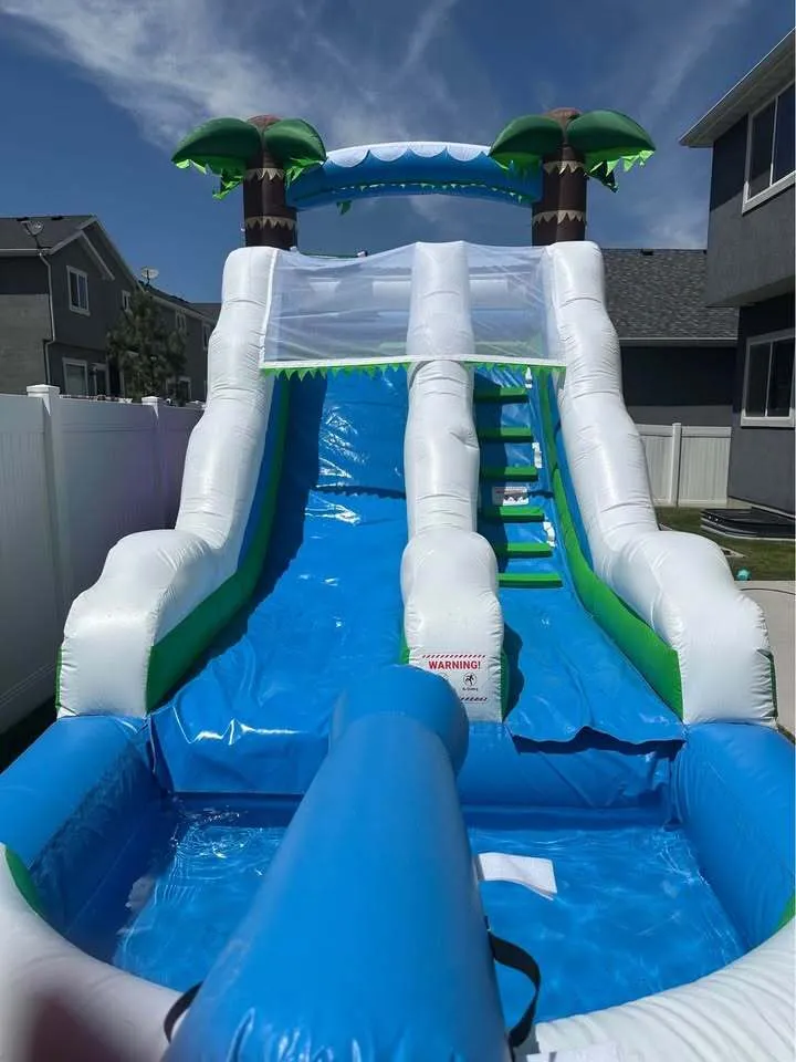 Bring big fun to your next event with this colorful inflatable water slide! Perfect for birthdays, family gatherings, or backyard parties, this versatile slide features a replaceable slide, climbing ladder, and pool that can be used wet or dry — or even filled with play balls for extra fun. The commercial-grade design sets up easily with a powerful blower, turning your yard into a mini water park in minutes. Get ready for hours of laughter and memories your kids will cherish!